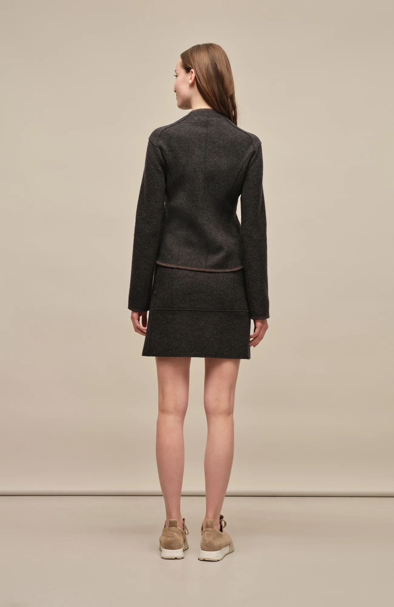 Wer das Comeback des Business-Kostüms auf eine legere und sportliche Art feiern möchte, trägt die kurzgeschnittene Walkjacke zum Rock Megan – eine perfekte Kombination. Aber auch zu Hosen wirkt sie besonders schön und punktet mit ihrer traditionellen Walktechnik, die die Schafwolle so verfilzen lässt, dass sie strapazier- und wetterfest wird. Angenehm am Körper, atmungsaktiv, feuchtigkeits- und temperaturregulierend.
