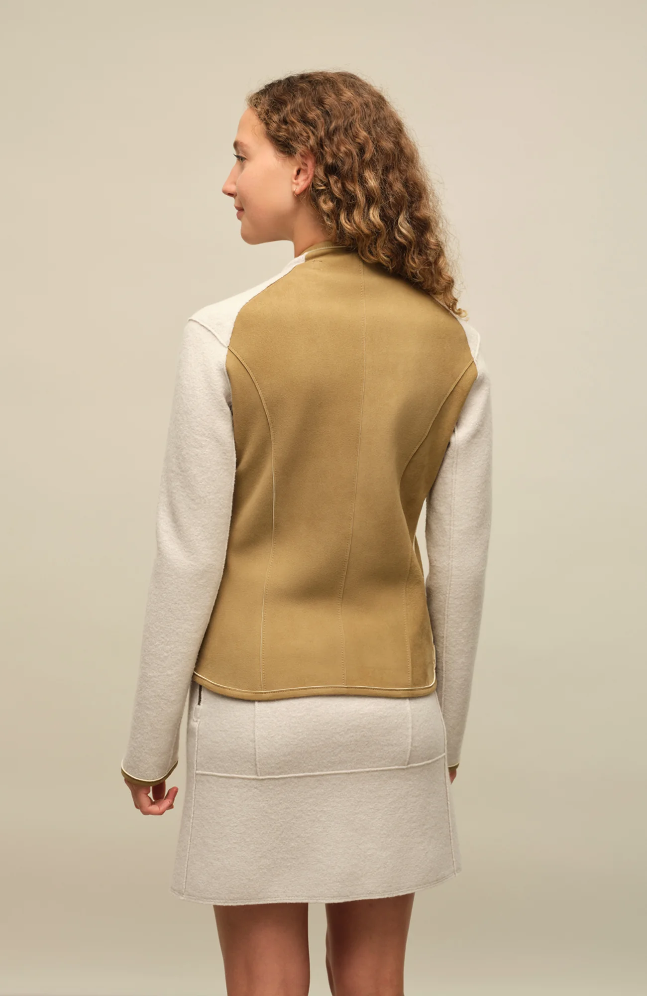 Hier trifft moderne Lederoptik am Rumpf auf traditionellen Walk an den Ärmeln. Eine optisch spannende Kombination, bei der beide Materialien 100 % natürlich gewonnen werden. Obwohl die Jacke überraschend leicht wirkt, bleibt sie auch nach häufigem Tragen formstabil.