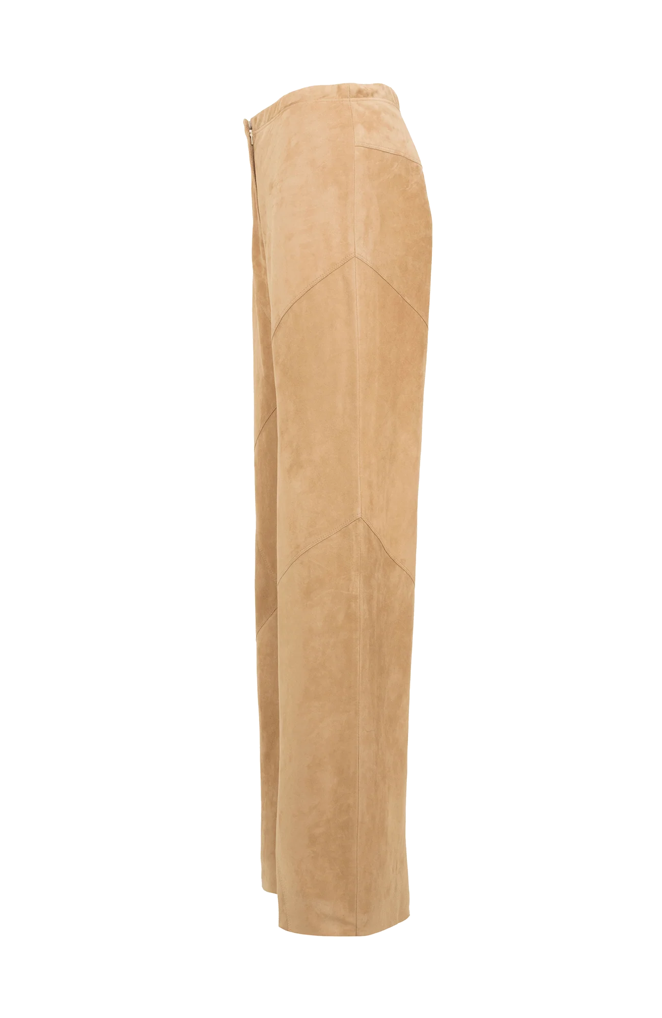 Diese moderne Hose aus ökologisch gefärbtem und gegerbtem Veloursleder ist angenehm weich, leicht und liegt anschmiegsam auf der Haut. Optimalen Halt und Tragekomfort bietet der elastische Bund mit Knopf und das teilgefütterte weiche Innenfutter.