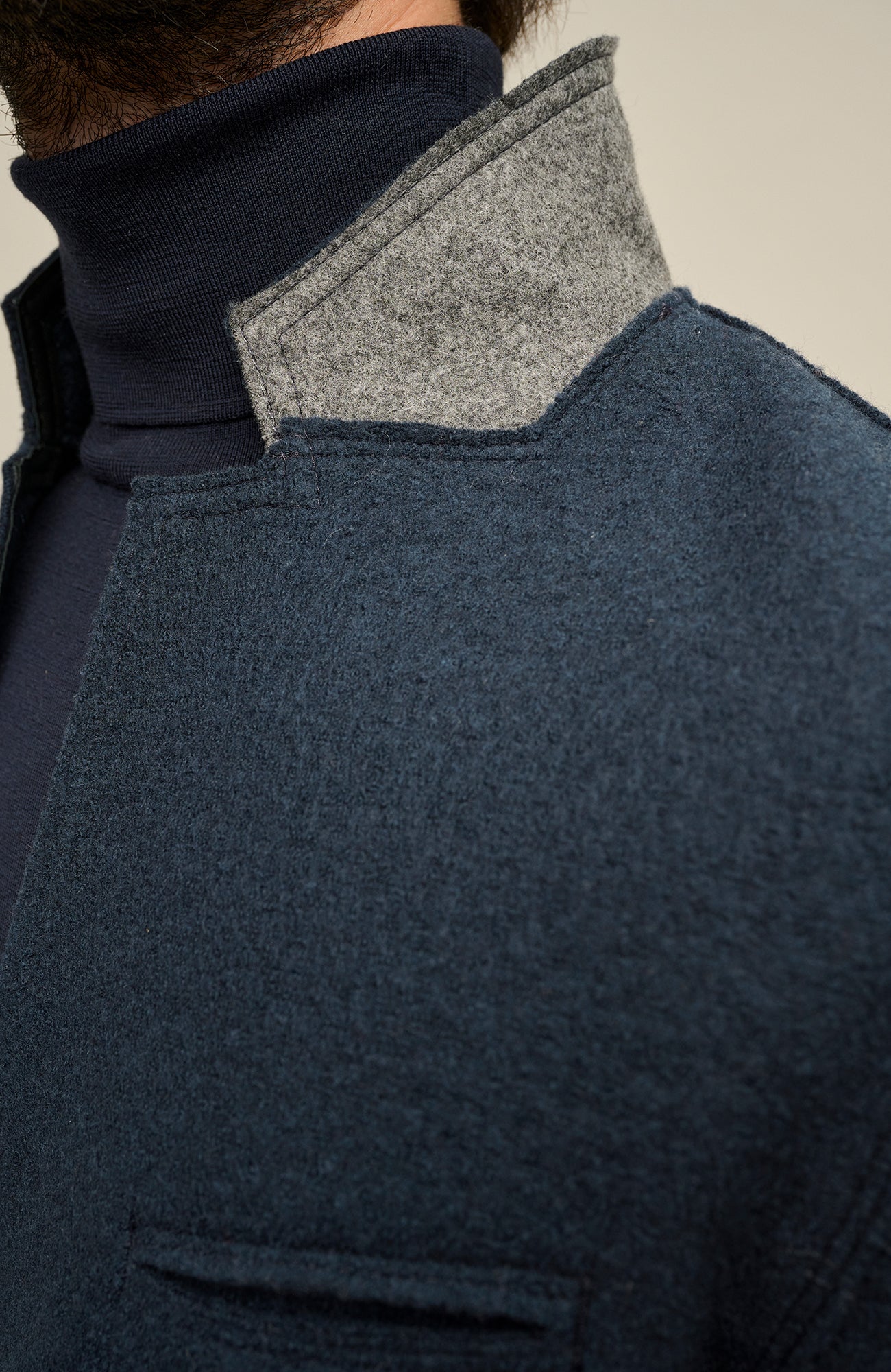 Traditionell im gröberen Stil gefertigt, kann dieses Stück sowohl als Sakko wie auch als Jacke getragen werden. Die hochwertige Verarbeitung wird durch den mit Loden verstärkten Kragen und das Revers mit gewaschenem Leder unterstrichen.