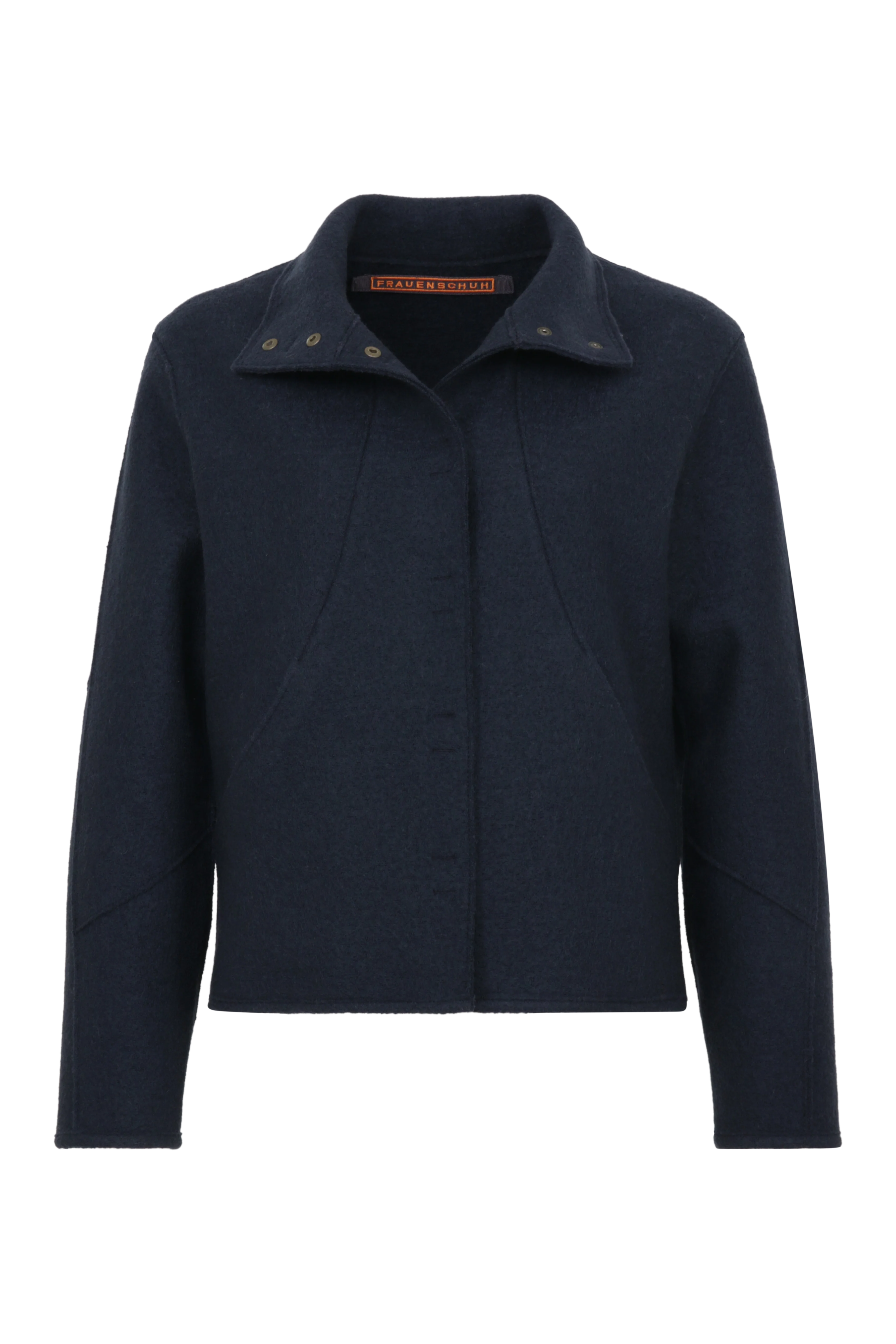 Seitliche Taschen fügen sich harmonisch in den Nahtverlauf ein und unterstreichen das klare Design. Wer das Business-Kostüm auf moderne, sportlich-legere Weise neu interpretieren möchte, kombiniert die kurz geschnittene Walkjacke mit dem Rock Zita– ein stilvolles Duo. Auch in Kombination mit Hosen überzeugt sie durch ihre klare Linie und hohe Funktionalität: Die traditionelle Walktechnik verfilzt die Schurwolle so, dass sie besonders strapazierfähig und wetterfest wird. Gleichzeitig sorgt das Naturmaterial für ein angenehmes Tragegefühl – atmungsaktiv sowie feuchtigkeits- und temperaturregulierend.